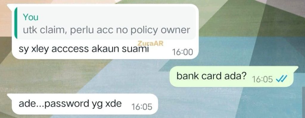 Hari ni saya berhadapan dengan client di mana situasi isteri tak tahu no pin kad bank suami.